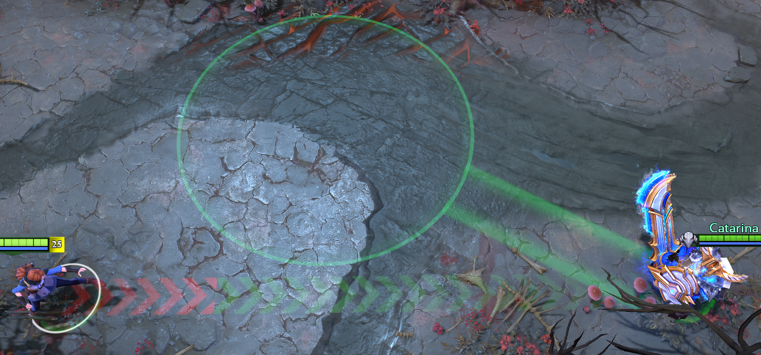 Векторное применение. Герой сближается с выбранным существом и отскакивает от него в указанном направлении на выбранное расстояние. Оттолкнувшись от цели способности, герой прыгает в выбранную точку, нанося урон всем врагам вокруг места приземления и замедляя их.